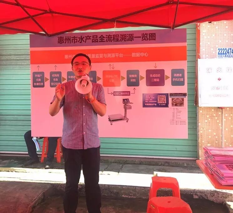 活动当天,惠城区水生动物疫病预防控制中心王勇主任详细介绍了惠州市水产品质量监管与溯源系统的建设情况,希望可以通过该系统,进一步规范惠州市水产品质量安全问题,通过培养消费者对可溯源水产品的购买习惯,倒逼供应商及商户自觉使用系统,形成市场的良性循环。