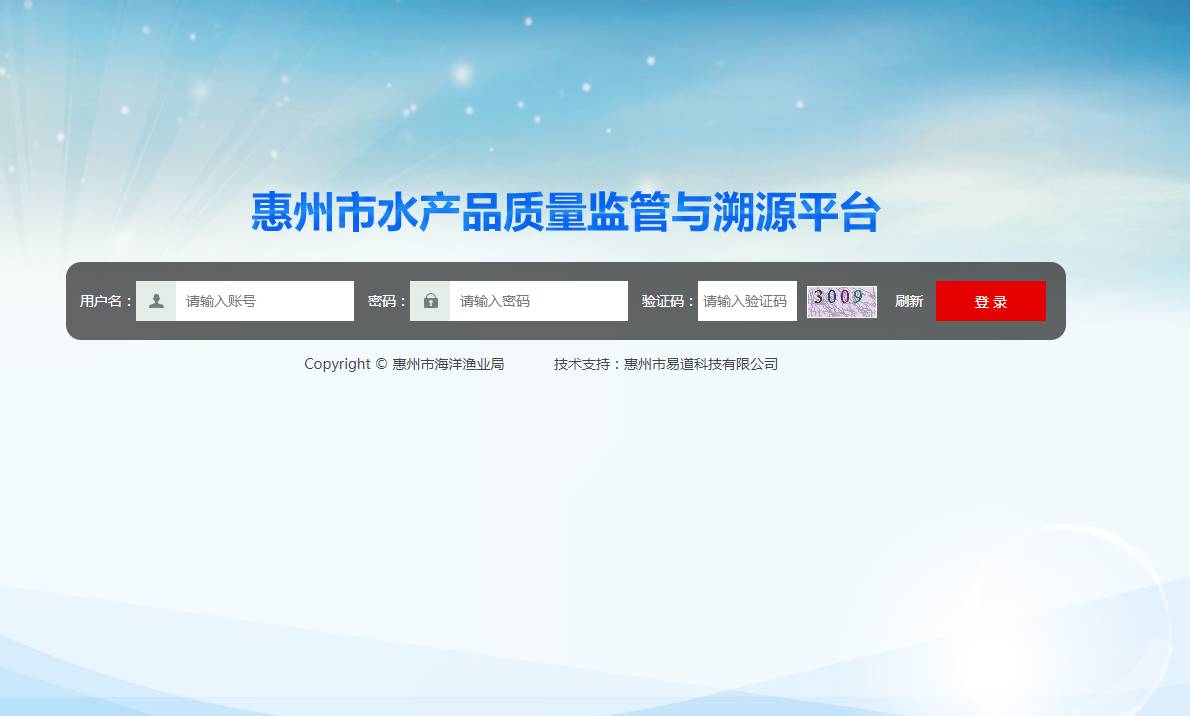 今年6月份上线的惠州市水产品质量监管与溯源系统,是在惠州市海洋与渔业局的主导下,由易道科技重点研发,采用信息化手段提升监管手段,实现水产品全链条溯源信息记录。